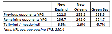 Passing Yards Per Game, Previous vs. Remaining Opponents