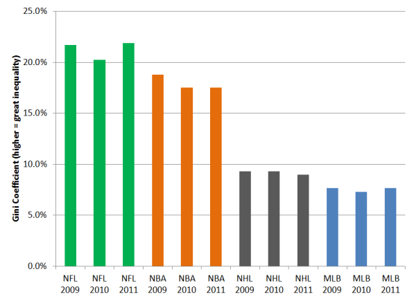 Figure 2: Gini Coefficients by Sport, Last Three Seasons