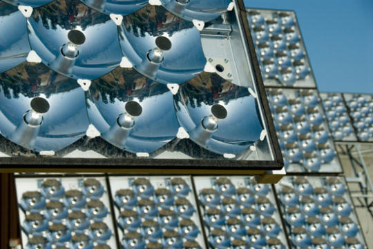Concentrating PV is also controversial. They start with high-efficiency semiconductors (efficiency of nearly 40%) which are very expensive. Since the material is expensive, they shrink it reduce the cost, and use lenses to concentrate the light that it sees. Most concentration factors range from 10x to 500x – meaning that you use 10x to 500x less material, and that material would see 10 to 500 times the regular intensity of the sun.