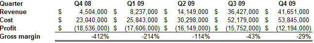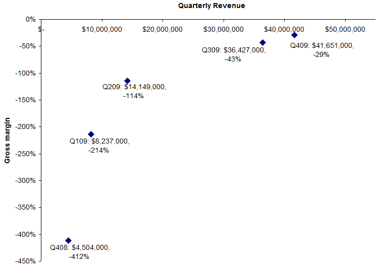 In fact, positive gross margins are even visible on the horizon. Chart the quarterly numbers, and you can see the trend.